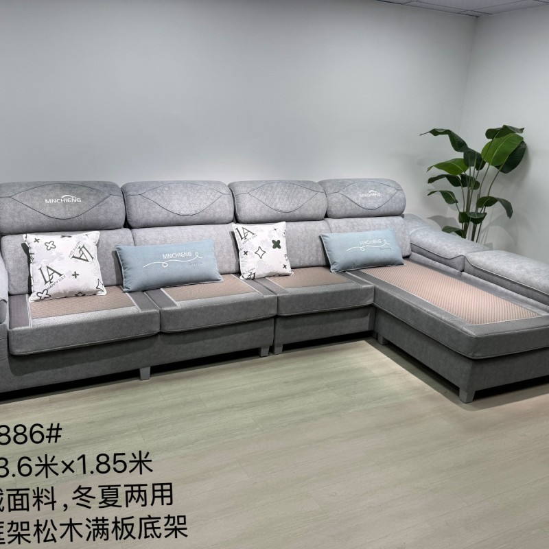 新款七型沙发,爆款型号886# 尺寸360×185CM,不分方向。 大头枕设计,提供更好的头部支撑,编藤凉席夏季凉爽,高品质绒布面料,触感柔软,松木满铺板结构稳固,高密度海绵座包,座感舒适,上样返单爆款。