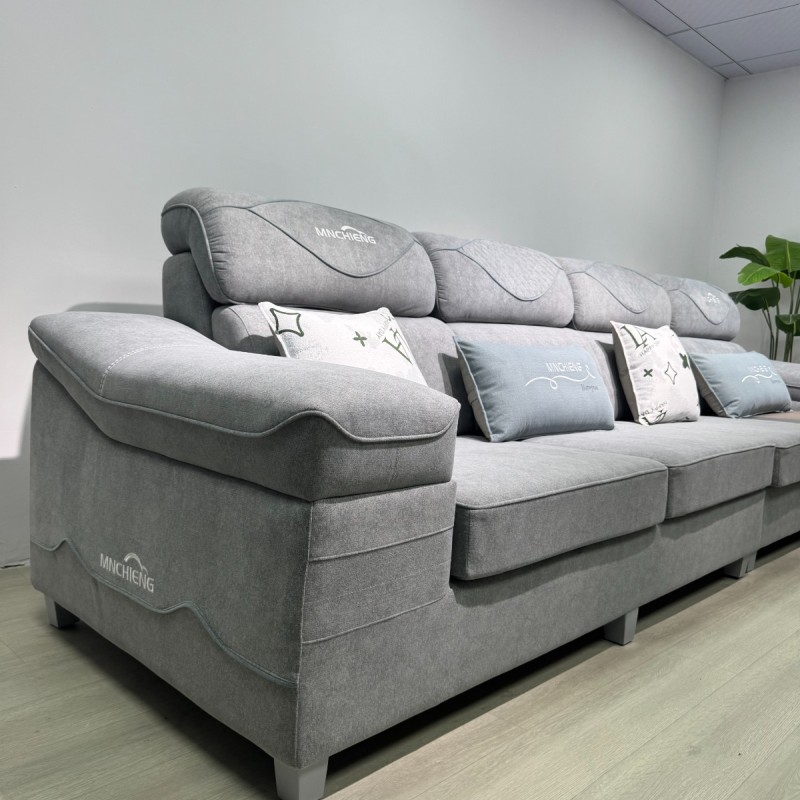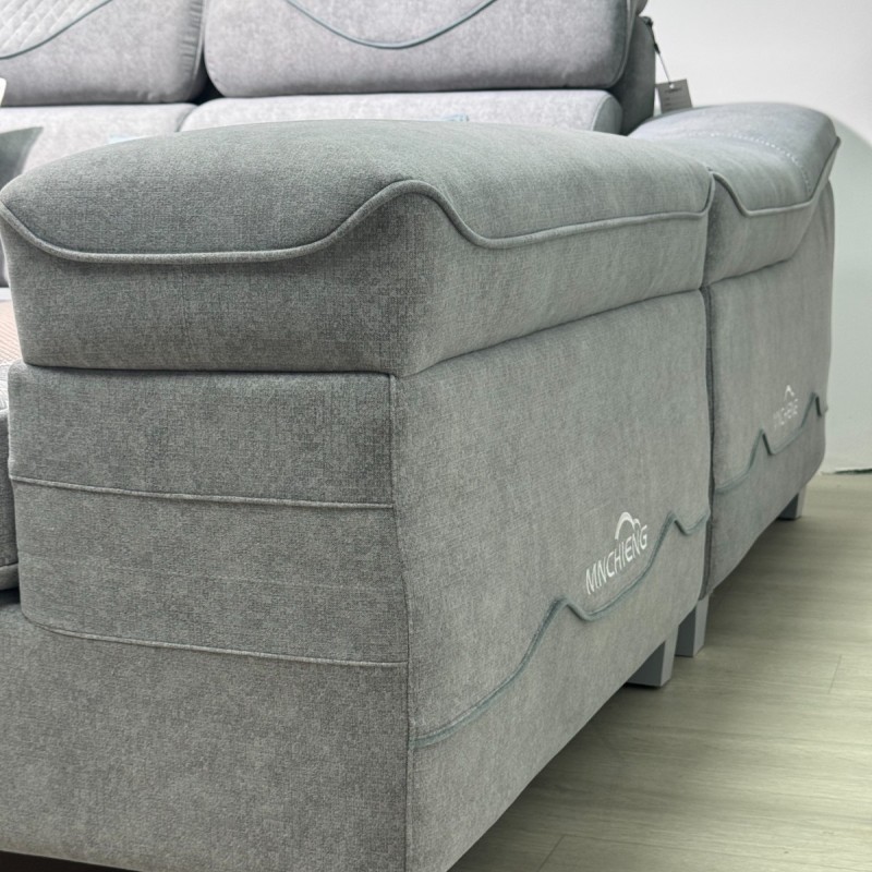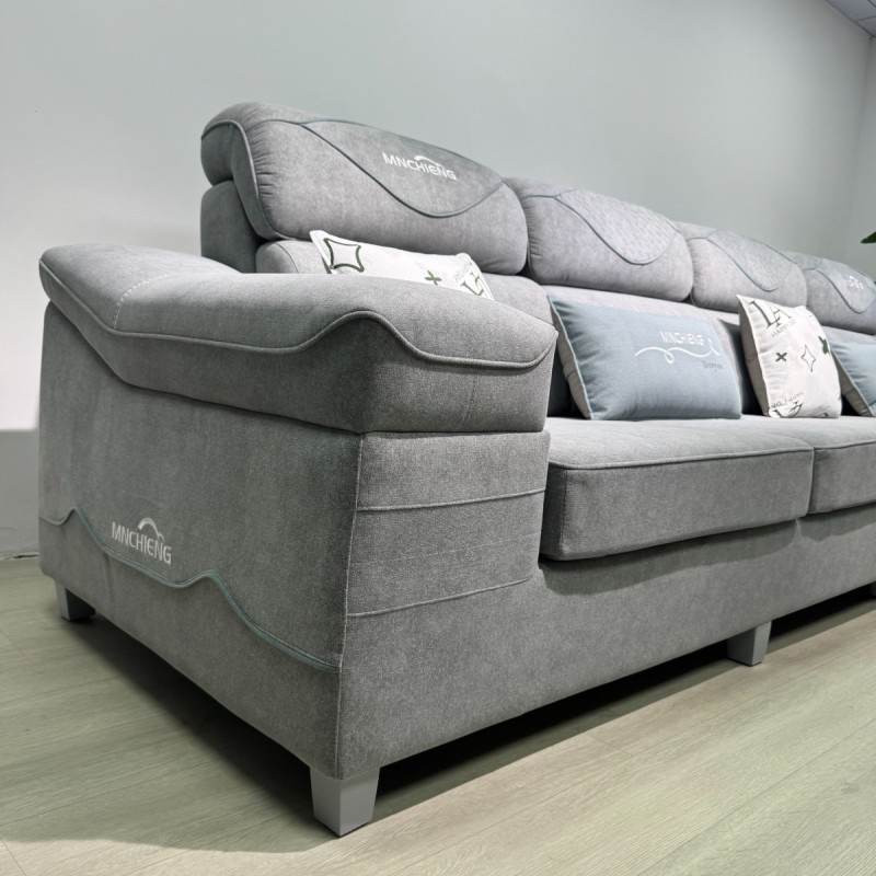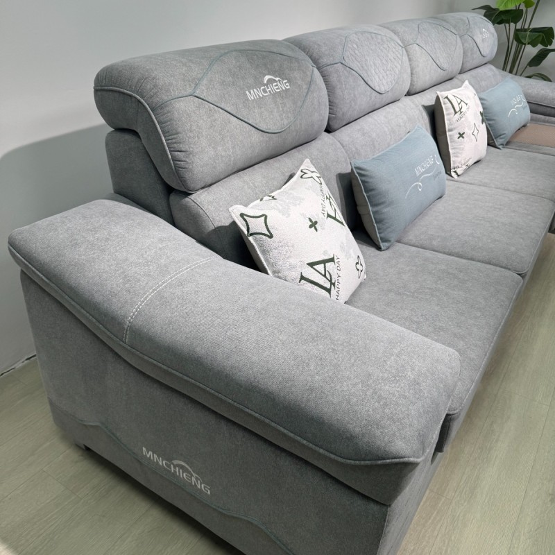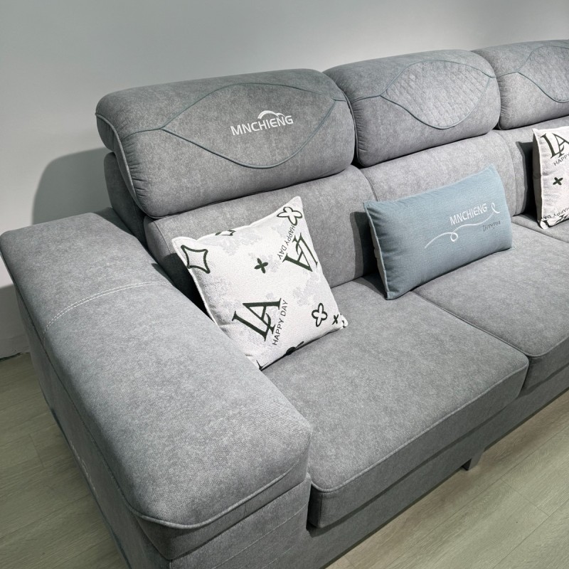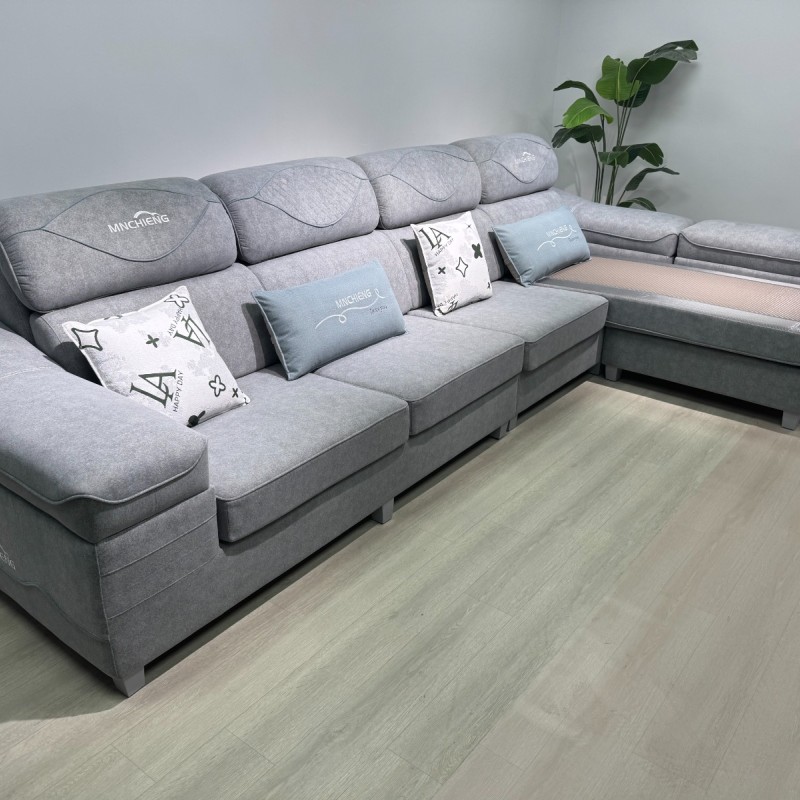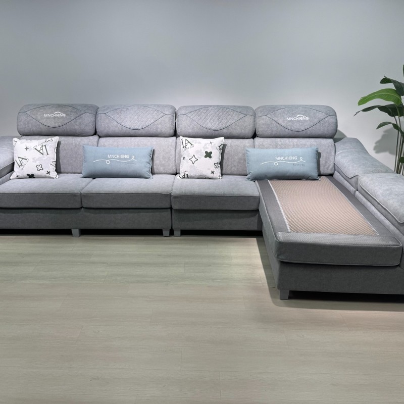 首页 > 产品中心 > 新款七型沙发,爆款型号886# 尺寸360×185CM,不分方向。 大头枕设计,提供更好的头部支撑,编藤凉席夏季凉爽,高品质绒布面料,触感柔软,松木满铺板结构稳固,高密度海绵座包,座感舒适,上样返单爆
