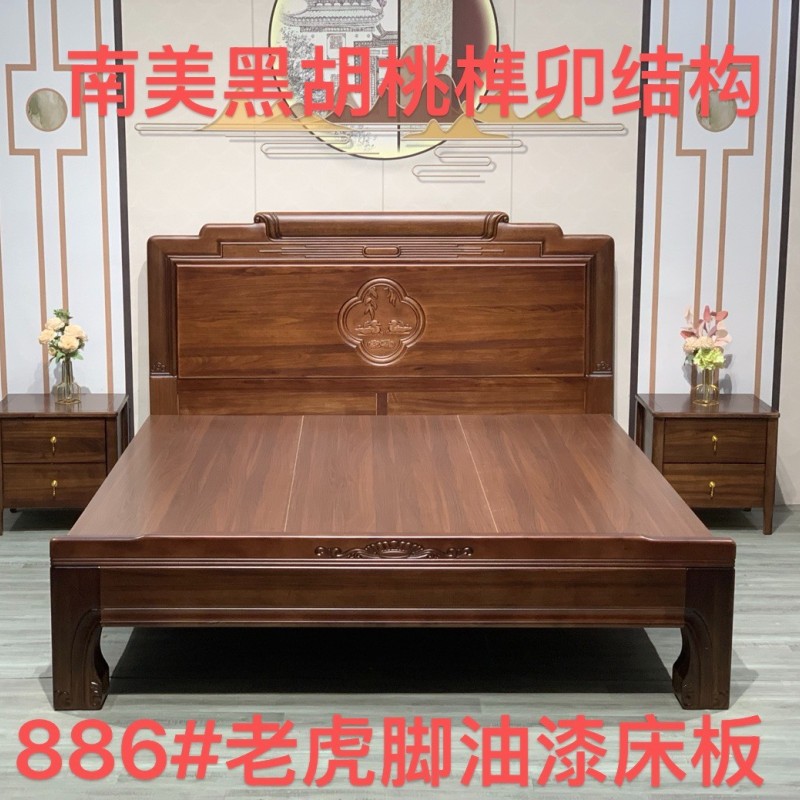 南美黑胡桃木系列,配老虎脚床尾,榫卯结构