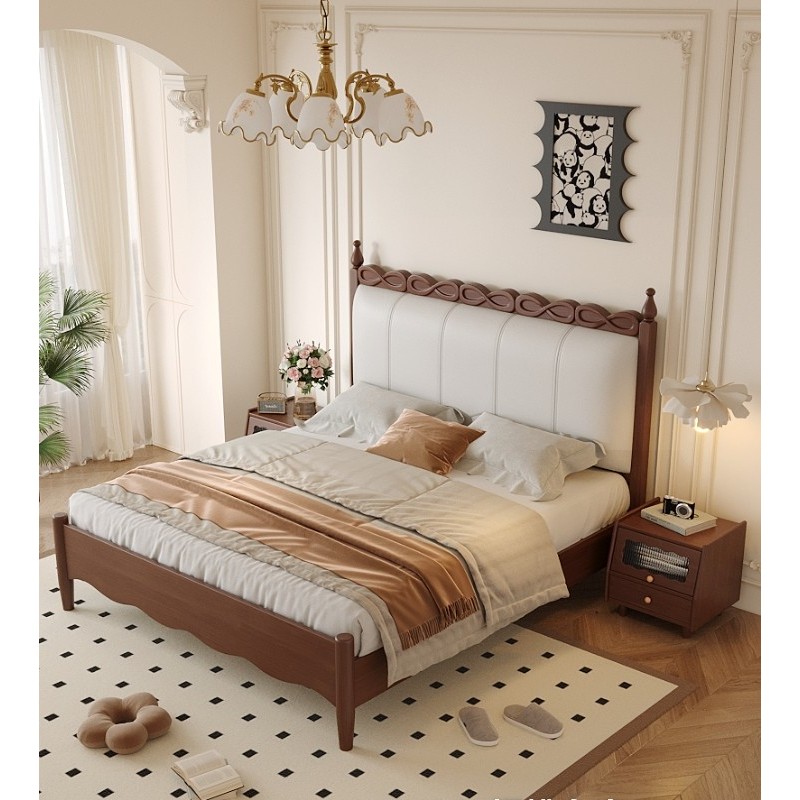 中古风(橡木床边,松木铺板) 1.8/1.5米,质量非常漂亮 樱桃色,黑色