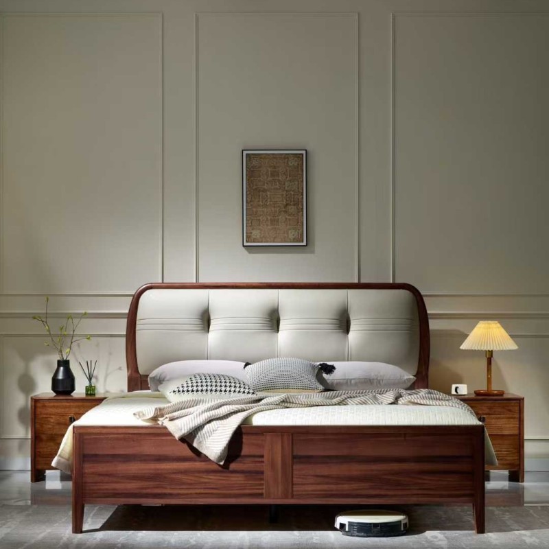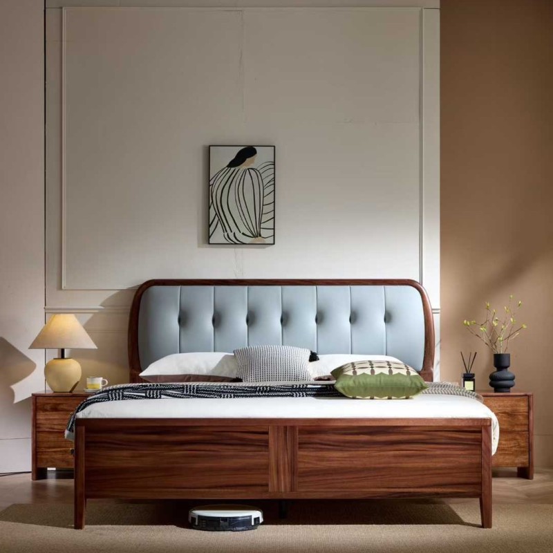 首页 > 产品中心 > 99系列#黑胡桃色软靠 材料:黑胡桃木 规格:1.5/1.8米 标配:3*20月牙桉木床边,3*6*7杉木床子 橡木卡槽:4*17橡木床边,卡槽床子 杉木高配:4*17杉木床边,2公分厚杉木满铺床板