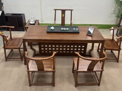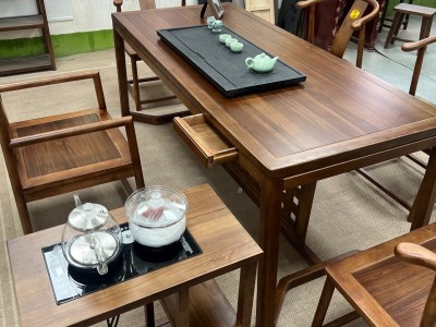 星启茶台 材质:金秋檀材质 颜色:北美胡桃色 尺寸:1.6米、1.8米