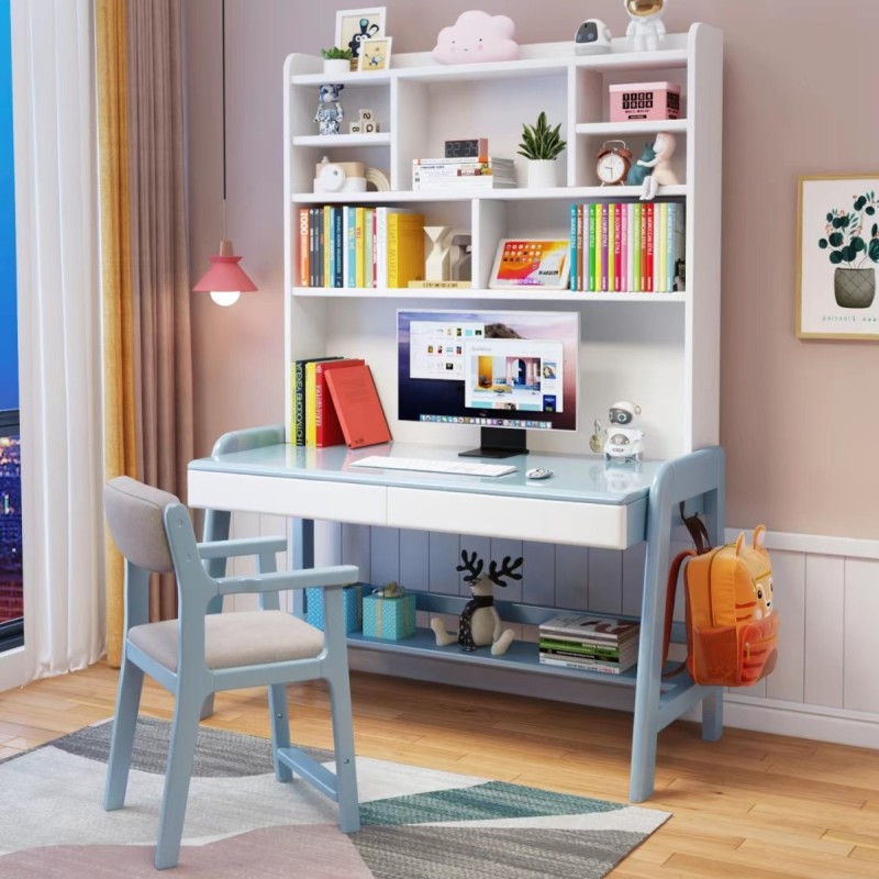 2034#全实木可升降双人二孩书桌,超高书架,可推拉长虹玻璃,尽显奢华,尺寸:1.6米,1.8米,每个尺寸有6个颜色
