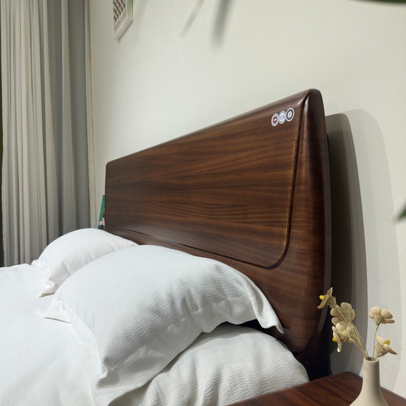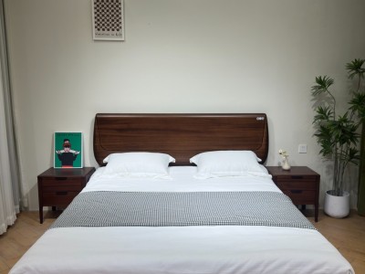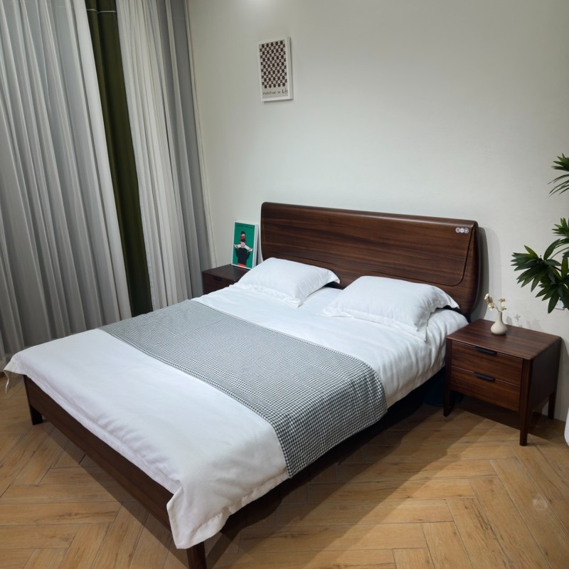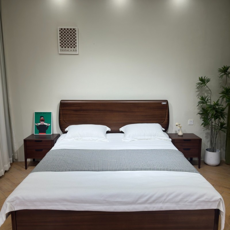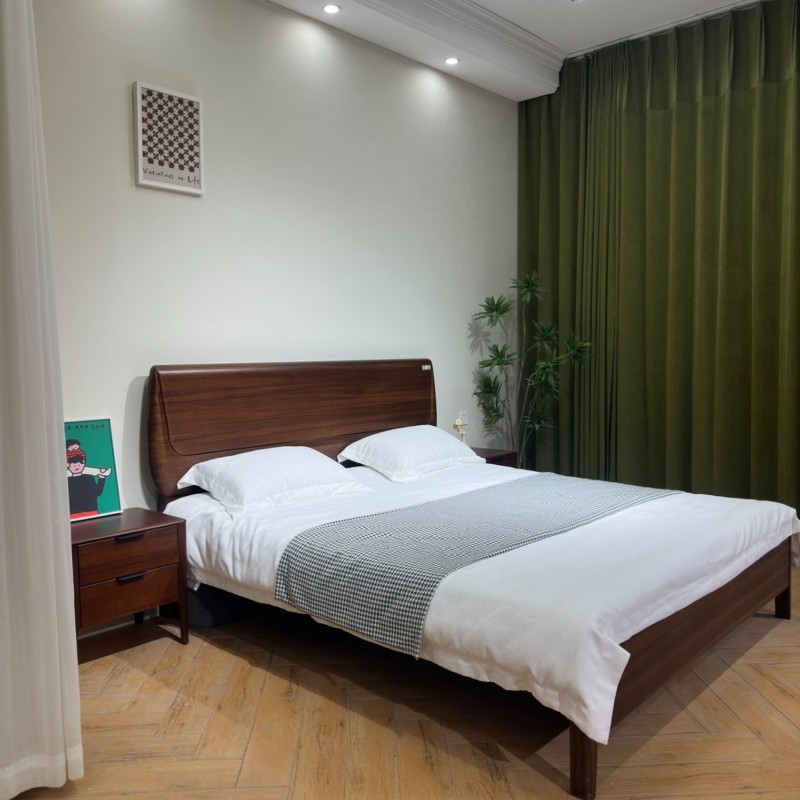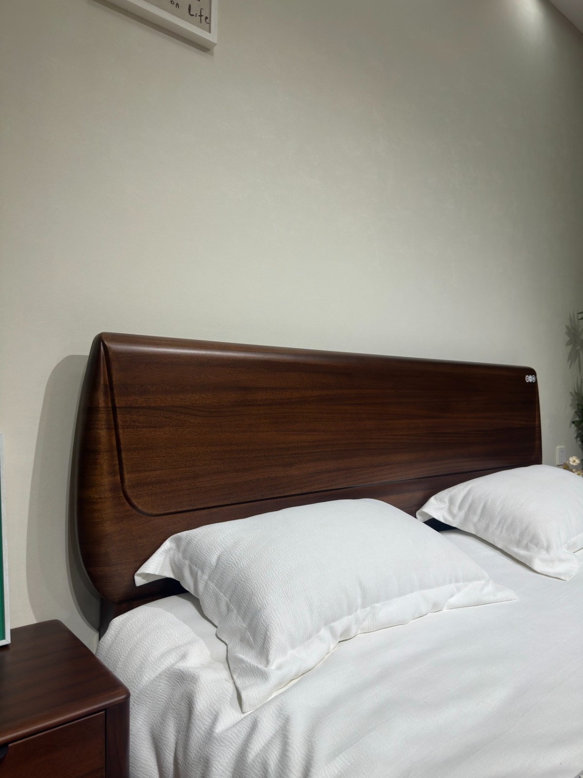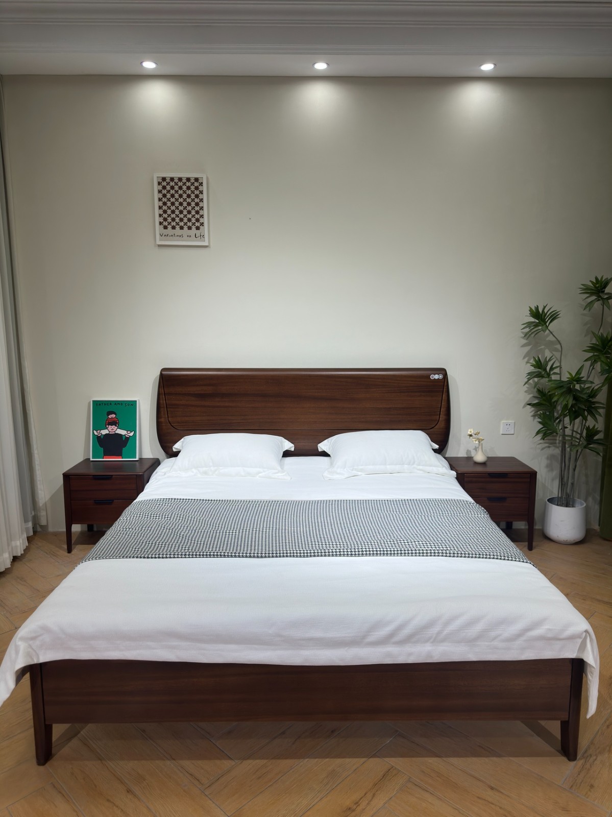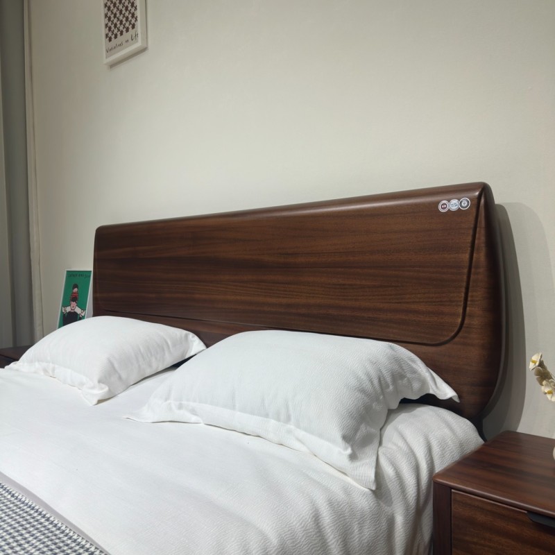 臻实胡桃木/全实木床, 颜色: 南美金柚色