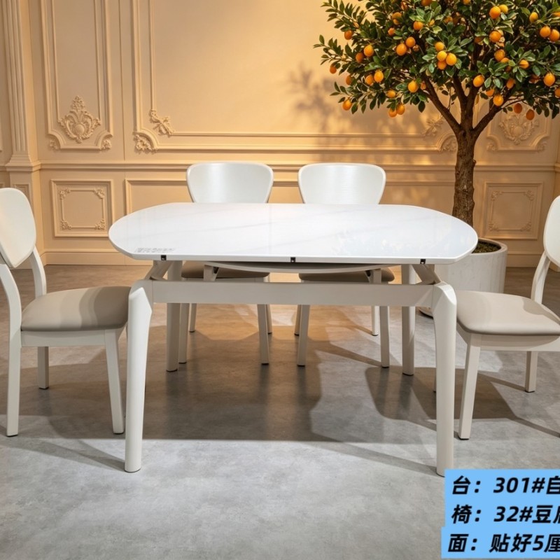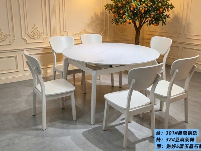 301# 自吸跳台 尺寸:1.33✘0.85米 台架颜色:白色、黑色、 台面:贴好5厘玉晶石 椅子:如图所示。 台架材质:实芯橡木桌腿,底部做油漆,自吸钢轨,加厚包装,细节拉满。